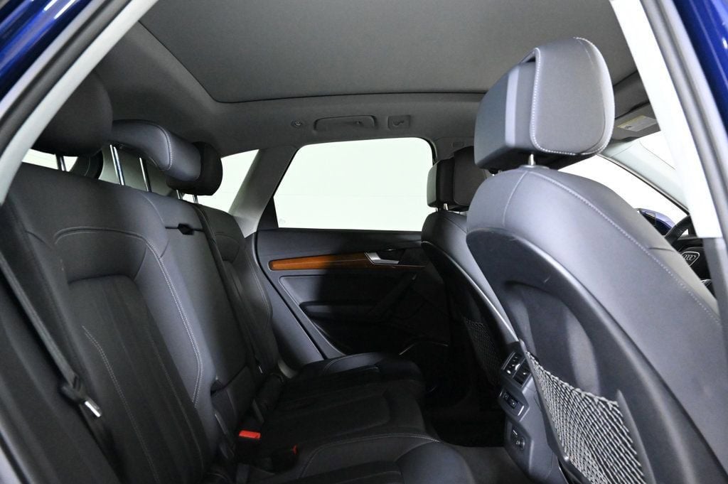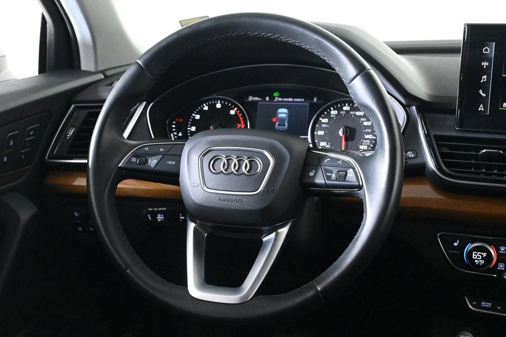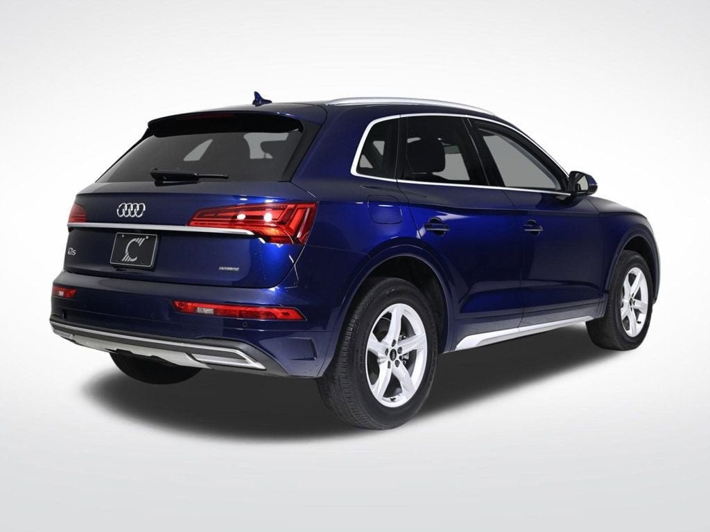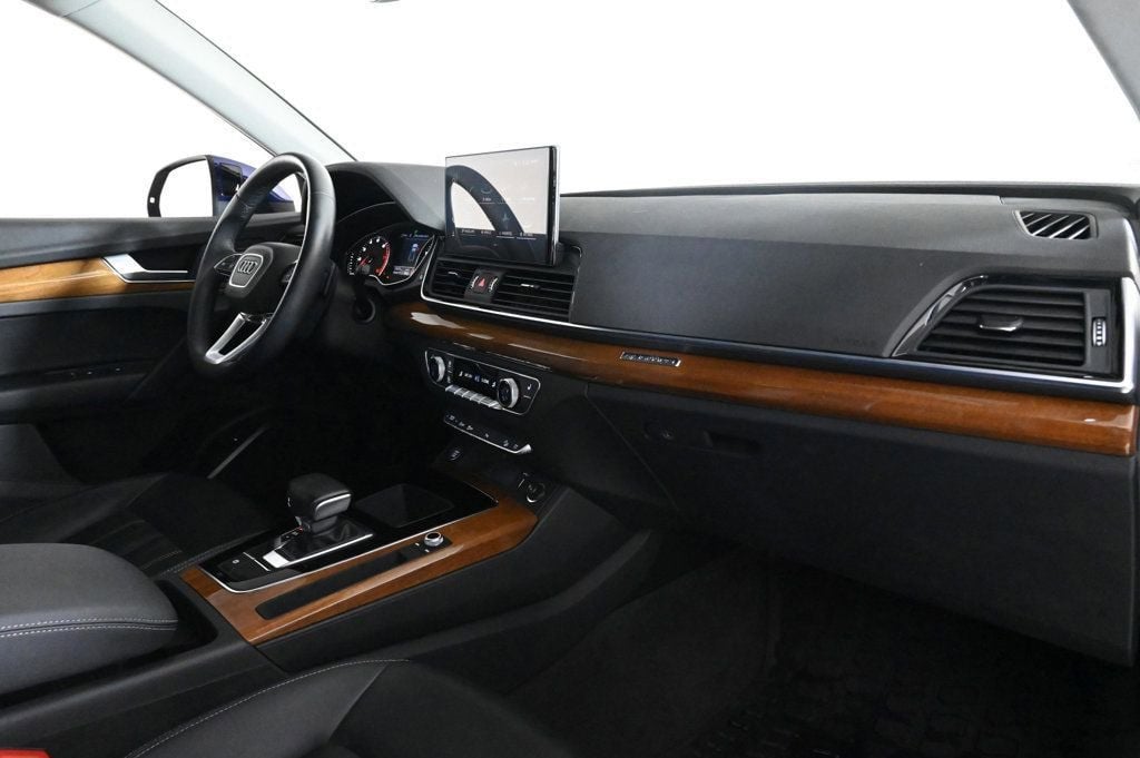Discover the exceptional 2023 Audi Q5 40 Premium quattro, a sophisticated and capable SUV that seamlessly blends performance, comfort, and style. With its striking Navarra Blue Metallic exterior, this meticulously maintained Audi Q5 is a true standout on the road. Boasting an impressive array of premium features, this Q5 is equipped to elevate your driving experience. Enjoy the convenience of the Panoramic Sunroof, the comfort of the Heated Steering Wheel, and the peace of mind provided by the Audi Advanced Key and Audi Beam-Rings. The Convenience Package further enhances your journey with features like Driver Seat & Mirror Memory, SiriusXM with 360L, and Auto-Dimming Power Folding Exterior Mirrors. Panoramic Sunroof Convenience Package Audi Beam-Rings Audi Guard Protection Kit Powered by a 2.0L Turbocharged engine and paired with a 7-Speed Automatic S tronic transmission, this Q5 delivers an exceptional blend of power and efficiency, with an EPA-estimated 23 city/29 highway MPG. As an Audi Certified pre-owned vehicle, this Q5 has undergone a rigorous 125+ point inspection and is backed by a comprehensive warranty and Roadside Assistance program. With a $0 deductible and a 1-year/20,000-mile limited warranty, you can purchase with confidence, knowing that your investment is protected. Discover the exceptional quality and value of this 2023 Audi Q5 40 Premium quattro. Experience the difference that Audi craftsmanship and attention to detail can make in your daily driving. Visit our showroom today and let us demonstrate how this remarkable SUV can elevate your automotive experience. Air Conditioning, Climate Control, Dual Zone Climate Control, Tinted Windows, Power Steering, Power Windows, Power Mirrors, Leather Steering Wheel, Leather Shifter, Power Drivers Seat, Power Passenger Seat, Memory Seat Position, Roof Rack, Rear Air Conditioning, Wood Trim, Clock, Tachometer, Digital Info Center, Homelink System, Tilt Steering Wheel, Telescoping Steering Wheel, Steering Wheel Radio Controls, Sunroof, Driver Airbag, Passenger Airbag, Side Airbags, Keyless Entry, Security System, ABS Brakes, Traction Control, Dynamic Stability, Rear Defogger, Fog Lights, Intermittent Wipers, AM/FM, Alloy Wheels, Leather Interior Surface, Convenience Package, 10 Speakers, Radio data system, Radio: Audi Sound System, SiriusXM with 360L, Automatic temperature control, Audi Advanced Key, Power driver seat, Four wheel independent suspension, 4-Wheel Disc Brakes, Dual front impact airbags, Dual front side impact airbags, Emergency communication system: Audi connect CARE, Front anti-roll bar, Low tire pressure warning, Occupant sensing airbag, Overhead airbag, Rear anti-roll bar, Power Liftgate, Brake assist, Exterior Parking Camera Rear, Auto High-beam Headlights, Delay-off headlights, Audi Beam-Rings, Audi Guard Protection Kit, Auto-Dimming Power Folding Exterior Mirrors, Bumpers: body-color, Heated door mirrors, Power door mirrors, Spoiler, Turn signal indicator mirrors, All-Weather Floor Mats, Auto-dimming Rear-View mirror, Cargo Mat, Compass, Driver door bin, Driver Seat & Mirror Memory, Driver vanity mirror, Front reading lights, Genuine wood console insert, Genuine wood dashboard insert, Genuine wood door panel insert, Heated 8-Way Power Front Bucket Seats, Heated Steering Wheel, Illuminated entry, Outside temperature display, Overhead console, Passenger vanity mirror, Rear reading lights, Rear seat center armrest, Telescoping steering wheel, Front Center Armrest, Heated front seats, Leather Seating Surfaces, Split folding rear seat, Sport Plus Seats, Passenger door bin, Wheels: 18 5-Arm-Star Design, Rain sensing wipers, Rear window wiper, 5.302 Axle Ratio Aux. Audio Input, Carpeted Floor Mats, Center Arm Rest, Child Proof Door Locks, Daytime Running Lights, Front Heated Seats, Heated Mirrors, Overhead Console, Parking Sensors, Power Lift Gate, Rear Fog Lamps, Rear Spoiler, Rear Spoiler, Rear Wipers, Remote Trunk Lid, Reverse Camera, Roll Stability Control, Side Curtain Airbags, Sliding Rear Window, Tire Pressure Monitor, Vanity Mirrors - Contact Alvaro Uribe at 786-628-7606 or auribe@ferrariofmiami.com for more information. -