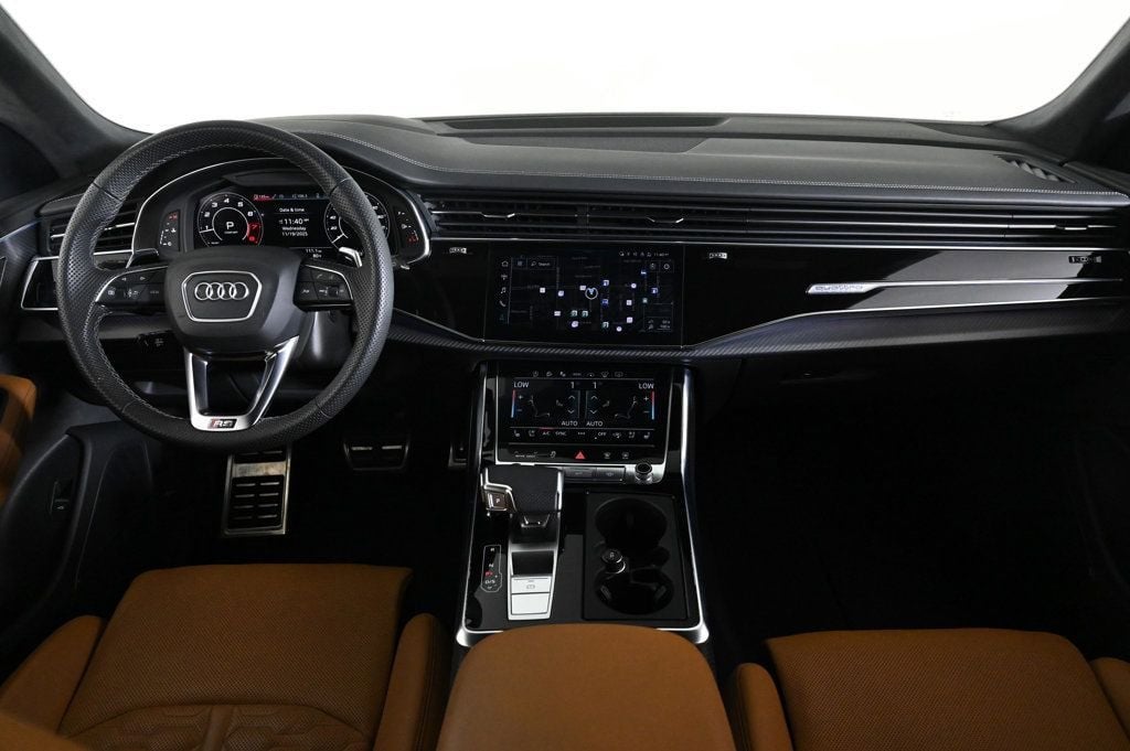 LOADED WITH VALUE! Comes equipped with: Air Conditioning, Rear Air Conditioning, Sunroof, MP3, Bluetooth, Front Heated Seats. This Audi RS Q8 also includes Clock, Climate Control, Power Passenger Seat, Tachometer, Multi-Zone Climate Control, Memory Seat Position, Digital Info Center, Cruise Control, Homelink System, Privacy Glass/Tinted Windows, Tilt Steering Wheel, Power Steering, Telescoping Steering Wheel, Power Windows, Steering Radio Controls, Power Mirrors, Moonroof, Leather Steering Wheel, Leather Shifter, Driver Airbag, ABS Brakes, Fog Lights, Passenger Airbag, Traction Control, Intermittent Wipers, Dynamic Stability, Keyless Entry, Rear Defogger, Security System, AM/FM, Anti-Theft, Sliding Rear Window, Air Conditioned Seats, Rear Spoiler, Sport Seats, Rear Wipers, Carbon Fiber Trim, Center Arm Rest, Remote Fuel Door, Vanity Mirrors, Heated Mirrors, Rear Fog Lamps, Child Proof Door Locks, Daytime Running Lights, Parking Sensors, Front AC Seats, Reverse Camera, Side Curtain Airbags, Roll Stability Control, Rear-Side Airbags, Power Lift Gate, Tire Pressure Monitor, Carpeted Floor Mats, Overhead Console, Aux. Audio Input, Voice Control. Air Conditioning, Climate Control, Dual Zone Climate Control, Cruise Control, Tinted Windows, Power Steering, Power Windows, Power Mirrors, Leather Steering Wheel, Leather Shifter, Power Passenger Seat, Memory Seat Position, Rear Air Conditioning, Clock, Tachometer, Digital Info Center, Homelink System, Tilt Steering Wheel, Telescoping Steering Wheel, Steering Wheel Radio Controls, Sunroof, Moonroof, Driver Airbag, Passenger Airbag, Keyless Entry, Security System, ABS Brakes, Traction Control, Dynamic Stability, Rear Defogger, Fog Lights, Intermittent Wipers, AM/FM, Anti-Theft, Alloy Wheels, Leather Interior Surface, TBD Axle Ratio, Wheels: 22 10-V-Spoke Star Design, Heated & Ventilated Sports Seats Plus, Perforated Valcona Leather Seating Surfaces, Radio: MMI Navigation Plus, 4-Wheel Disc Brakes, Navigation system: Audi MMI Navigation plus with Touch Response, Emergency communication system: Audi connect CARE, Auto High-beam Headlights, Exterior Parking Camera Rear, Rear Window Blind, Compass, 17 Speakers, Auto-dimming Rear-View mirror, Ventilated front seats, Turn signal indicator mirrors, Telescoping steering wheel, Steering wheel memory, Split folding rear seat, Rear window wiper, Rear side impact airbag, Rear seat center armrest, Rear reading lights, Rear anti-roll bar, Rain sensing wipers, Radio data system, Power driver seat, Power door mirrors, Passenger vanity mirror, Passenger door bin, Overhead console, Overhead airbag, Outside temperature display, Occupant sensing airbag, Low tire pressure warning, Illuminated entry, Heated steering wheel, Heated front seats, Heated door mirrors, Headlight cleaning, Fully automatic headlights, Front reading lights, Front anti-roll bar, Four wheel independent suspension, Dual front side impact airbags, Dual front impact airbags, Driver vanity mirror, Driver door bin, Delay-off headlights, Bumpers: body-color, Brake assist, Automatic temperature control, Auto-leveling suspension, Auto-dimming door mirrors, Adaptive suspension, Spoiler, Power Liftgate, Front Center Armrest, Sport Plus Seats Air Conditioned Seats, Aux. Audio Input, Bluetooth, Carbon Fiber Trim, Carpeted Floor Mats, Center Arm Rest, Child Proof Door Locks, Daytime Running Lights, Front AC Seats, Front Heated Seats, Heated Mirrors, Overhead Console, Parking Sensors, Power Lift Gate, Rear Fog Lamps, Rear Spoiler, Rear Spoiler, Rear Wipers, Rear-Side Airbags, Remote Fuel Door, Reverse Camera, Roll Stability Control, Side Curtain Airbags, Sliding Rear Window, Sport Seats, Tire Pressure Monitor, Vanity Mirrors - Contact Alvaro Uribe at 786-628-7606 or auribe@ferrariofmiami.com for more information. -