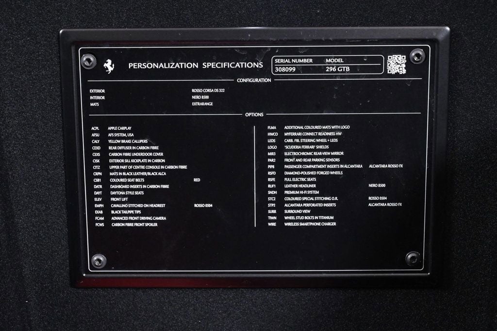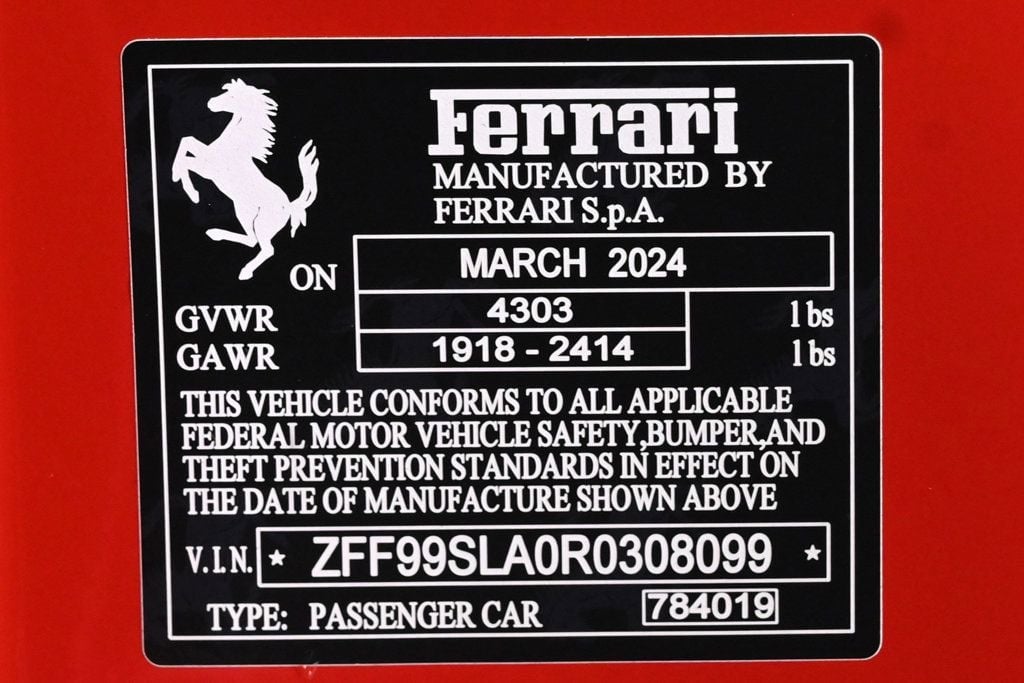 EXTREMELY LOW MILES! Get the best value from your vehicle purchase. This 2024 boasts an extremely low 901 miles! LOADED WITH VALUE! Comes equipped with: Air Conditioning, Navigation System. This Ferrari 296 GTB also includes Clock, Climate Control, Power Passenger Seat, Tachometer, Memory Seat Position, Digital Info Center, Cruise Control, Tilt Steering Wheel, Power Steering, Telescoping Steering Wheel, Power Windows, Steering Radio Controls, Power Mirrors, Leather Steering Wheel, Leather Shifter, Driver Airbag, ABS Brakes, Fog Lights, Passenger Airbag, Traction Control, Intermittent Wipers, Side Airbags, Dynamic Stability, Keyless Entry, Rear Defogger, Security System, AM/FM, Satellite Radio, Rear Spoiler, Center Arm Rest, Cup Holders, Remote Fuel Door, Remote Trunk Lid, Heated Mirrors, Rear Fog Lamps, Daytime Running Lights, Parking Sensors, Reverse Camera, Roll Stability Control, Adaptive headlights, Tire Pressure Monitor, Premium Sound, Carpeted Floor Mats, HD Radio, Onboard Hard Drive, Voice Control. Air Conditioning, Climate Control, Cruise Control, Power Steering, Power Windows, Power Mirrors, Leather Steering Wheel, Leather Shifter, Power Passenger Seat, Memory Seat Position, Clock, Tachometer, Digital Info Center, Tilt Steering Wheel, Telescoping Steering Wheel, Steering Wheel Radio Controls, Driver Airbag, Passenger Airbag, Side Airbags, Keyless Entry, Security System, ABS Brakes, Traction Control, Dynamic Stability, Rear Defogger, Fog Lights, Intermittent Wipers, AM/FM, Alloy Wheels, Leather Interior Surface, Wheels: 20 x 9 Fr & 20 x 11 Rr, Standard Seats, Leather Seat Trim, 4-Wheel Disc Brakes, Ceramic disc brakes: front and rear, Exterior Parking Camera Rear, Apple CarPlay, Compass, Front beverage holders, Telescoping steering wheel, Sport steering wheel, Rear anti-roll bar, Rain sensing wipers, Radio data system, Power driver seat, Power door mirrors, Passenger door bin, Passenger cancellable airbag, Outside temperature display, Low tire pressure warning, Illuminated entry, Heated door mirrors, Fully automatic headlights, Front reading lights, Front anti-roll bar, Four wheel independent suspension, Dual front side impact airbags, Dual front impact airbags, Driver door bin, Delay-off headlights, Bumpers: body-color, Brake assist, Automatic temperature control, Adaptive suspension, Voltmeter, Spoiler, Rear Parking Sensors, Navigation System, Front Center Armrest, Sport Plus Seats, 6 Speakers Adaptive headlights, Carpeted Floor Mats, Center Arm Rest, Cup Holders, Daytime Running Lights, Heated Mirrors, Navigation System, Parking Sensors, Premium Sound, Rear Fog Lamps, Rear Spoiler, Rear Spoiler, Remote Fuel Door, Remote Trunk Lid, Reverse Camera, Roll Stability Control, Tire Pressure Monitor - Contact Alvaro Uribe at 786-628-7606 or auribe@ferrariofmiami.com for more information. -