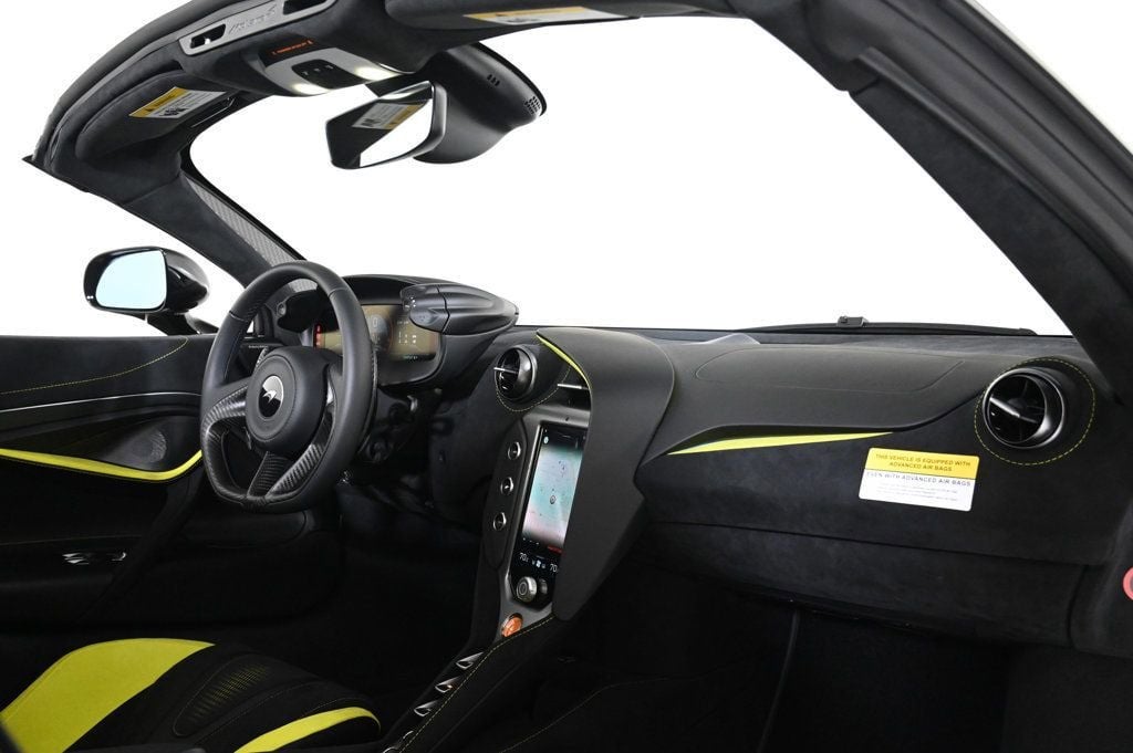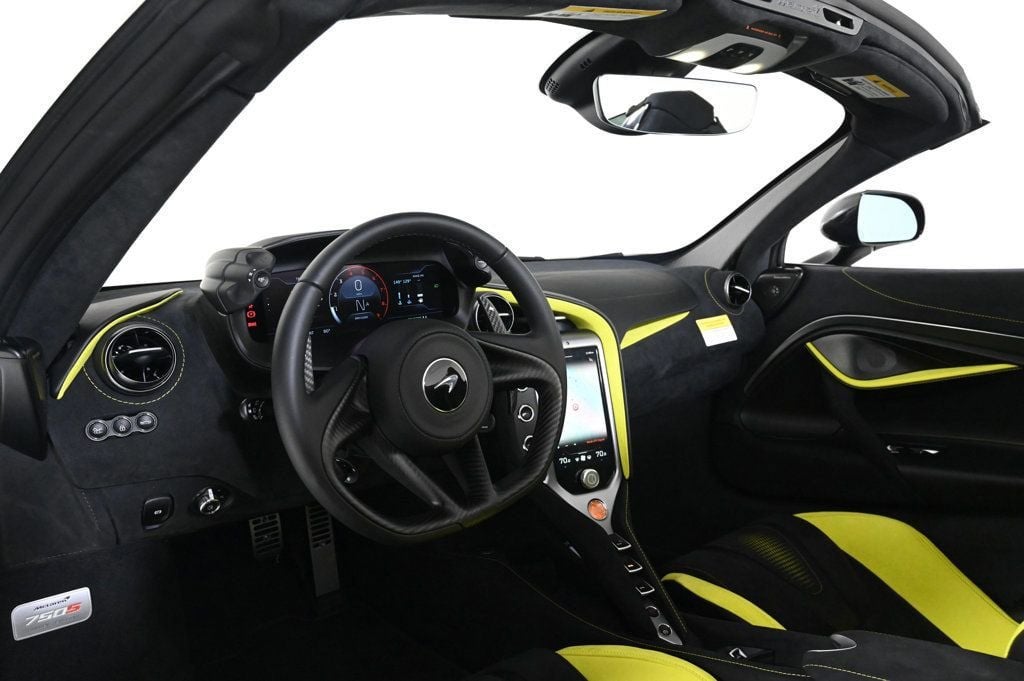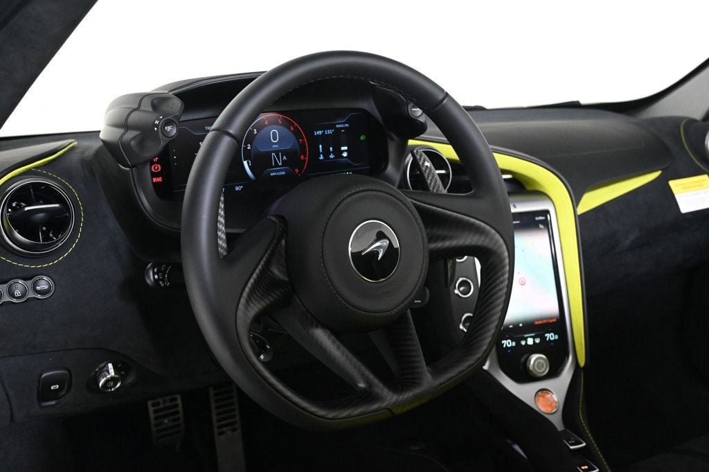 KEY FEATURES AND OPTIONS Comes equipped with: Air Conditioning, Navigation System. This McLaren 750S also includes Power Driver's Seat, Clock, Climate Control, Tachometer, Multi-Zone Climate Control, Digital Info Center, Cruise Control, Tilt Steering Wheel, Power Steering, Telescoping Steering Wheel, Power Windows, Power Mirrors, Leather Steering Wheel, Leather Shifter, Driver Airbag, ABS Brakes, Fog Lights, Passenger Airbag, Traction Control, Intermittent Wipers, Side Airbags, Dynamic Stability, Keyless Entry, Rear Defogger, Security System, AM/FM, Rear Spoiler, Carbon Fiber Trim, Center Arm Rest, Cup Holders, Remote Trunk Lid, Vanity Mirrors, Heated Mirrors, Rear Fog Lamps, Daytime Running Lights, Parking Sensors, Reverse Camera, Roll Stability Control, Power Lift Gate, Tire Pressure Monitor, Premium Sound, Carpeted Floor Mats, Overhead Console, Onboard Hard Drive. Air Conditioning, Climate Control, Dual Zone Climate Control, Cruise Control, Power Steering, Power Windows, Power Mirrors, Leather Steering Wheel, Leather Shifter, Power Drivers Seat, Clock, Tachometer, Digital Info Center, Tilt Steering Wheel, Telescoping Steering Wheel, Driver Airbag, Passenger Airbag, Side Airbags, Keyless Entry, Security System, ABS Brakes, Traction Control, Dynamic Stability, Rear Defogger, Fog Lights, Intermittent Wipers, AM/FM, Alloy Wheels, Alcantara Interior Surface, Navigation System, Convertible HardTop, 4 Speakers, Bowers & Wilkins 12-Speaker Audio System, Radio data system, Automatic temperature control, Power driver seat, Adaptive suspension, Auto-leveling suspension, Four wheel independent suspension, Vehicle Lift, 4-Wheel Disc Brakes, Ceramic disc brakes: front and rear, Dual front impact airbags, Dual front side impact airbags, Front anti-roll bar, Integrated roll-over protection, Knee airbag, Low tire pressure warning, Occupant sensing airbag, Rear anti-roll bar, Brake assist, Exterior Parking Camera Rear, Delay-off headlights, Fully automatic headlights, Bumpers: body-color, Convertible roof wind blocker, Heated door mirrors, Power door mirrors, Spoiler, Stealth Exhaust Finisher, Apple CarPlay, Auto-dimming Rear-View mirror, Carbon Fiber Racing Seats - Regular, Compass, Convertible roof lining, Driver door bin, Driver vanity mirror, Front reading lights, Illuminated entry, MSO Bespoke Painted Carbon Extended Gearshift Paddles, MSO Bespoke Painted Steering Wheel Clasp, Outside temperature display, Overhead console, Passenger vanity mirror, Power convertible roof, Sport steering wheel, Telescoping steering wheel, Voltmeter, Front Center Armrest, Full Alcantara Seat Trim, Sport Plus Seats, Passenger door bin, Gloss Black Wheel Finish, Glass rear window, Rain sensing wipers, Flux Green Brake Calipers Carbon Fiber Trim, Carpeted Floor Mats, Center Arm Rest, Cup Holders, Daytime Running Lights, Heated Mirrors, Navigation System, Overhead Console, Parking Sensors, Power Lift Gate, Premium Sound, Rear Fog Lamps, Rear Spoiler, Rear Spoiler, Remote Trunk Lid, Reverse Camera, Roll Stability Control, Tire Pressure Monitor, Vanity Mirrors - Contact Alvaro Uribe at 786-628-7606 or auribe@ferrariofmiami.com for more information. -