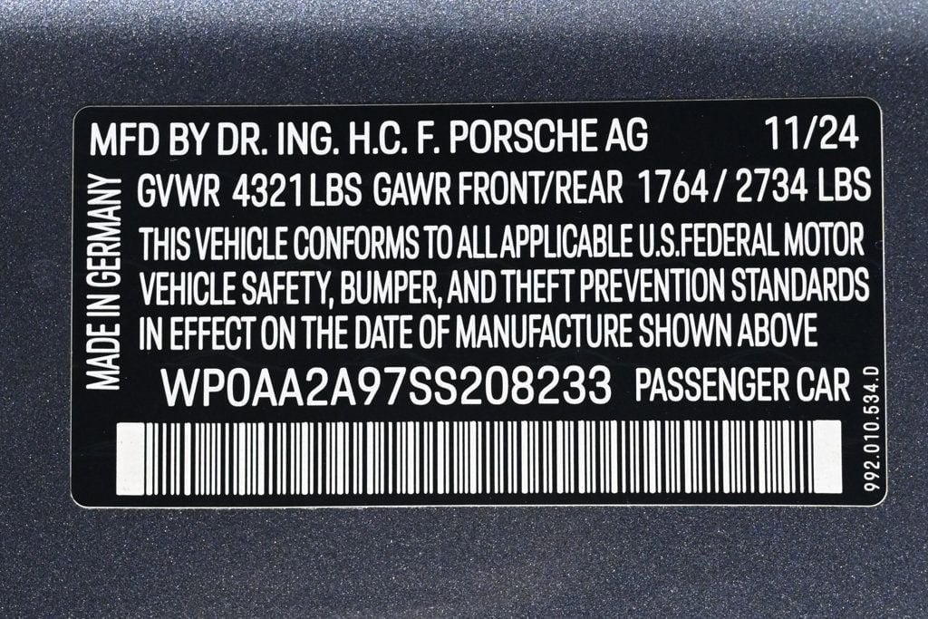 Certified. Gray 2025 Porsche 911 Carrera RWD 3.0L H6 Turbocharged DOHC 24V LEV3-ULEV70 388hp ABS brakes, Alloy wheels, Electronic Stability Control, Emergency communication system, Front dual zone A/C, Heated door mirrors, Heated front seats, Illuminated entry, Leather Seat Trim, Low tire pressure warning, Navigation System, Porsche Communication Management, Remote keyless entry, Traction control. Difference From the moment you drive into our one-of-a-kind facility, you will feel a difference in the energy here. Simply put: we are not your ordinary car dealership. What truly differentiates us is the professional level of service we provide. When you acquire a new or pre-owned automobile from us, both you and your automobile are treated with the utmost care and attentiveness like a member of our own family. That is why so many of our clients return to THE COLLECTION time and again, and refer us time and time again. We have also amassed an extraordinary team of employees. Plus, we have created all-new positions with your needs in mind. Including a Client Delight Manager which oversees our concierge team and whose sole purpose is to surprise and delight our guests; and on-staff technologists available to assist and educate you on all the latest features available on your vehicle. THE COLLECTION family will exceed your expectations, making this an uniquely gratifying experience that you will want to revisit time and time again. Porsche Approved Certified Pre-Owned Details: