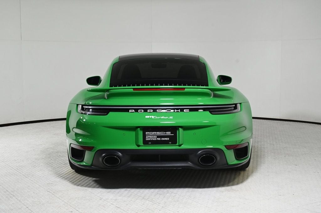 Recent Arrival! Certified. Python Green 2022 Porsche 911 Turbo S AWD 8-Speed Porsche Doppelkupplung (PDK) 3.8L H6 Turbocharged DOHC 24V LEV3-ULEV70 640hp Recent Oil Change, Passed Inspection, 360 Camera, Active Parking Assist, Adaptive Cruise Control, Adaptive Headlights, AndroidTM Auto/Apple Carplay, Automatic Headlights, Backup Camera, Blind-Spot Monitors, Bluetooth, Collision Warning Alert System, Heated/Cooled Seats, Navigation, Smartphone App Integration, Touchscreen Controls, Voice Recognition, Wi-Fi Hotspot, FRESHLY SERVICED @ THE COLLECTION PORSCHE, NICELY EQUIPPED WITH MANY PORSCHE FACTORY ORDERED OPTIONS, AWD, Active Cruise Control, Ambient Lighting, Burmester High-End Surround Sound System, Carbon Fiber Roof, Deletion of Quilting, Deletion of Turbo S Logo on Headrests, Exclusive Design Taillights, Front Axle Lift System, Heated GT Sport Steering Wheel with Carbon Fiber, Illuminated Door-Sill Guards in Matte Carbon Fiber, Lane Change Assist (LCA), LED-Matrix Design Headlights in Black with PDLS+, Lightweight & Noise Insulated Glass, Lightweight Package i.c.w. Adaptive Sport Seats Plus, PASM Sport Suspension (Lowered 10mm), Passenger Cupholder Trim in Leather, Porsche Ceramic Composite Brakes (PCCB) in Black, Sport Exhaust System with Tailpipes in Silver, Storage Package, Surround View, Ventilated Front Seats, Window Trim in High Gloss Black. Difference From the moment you drive into our one-of-a-kind facility, you will feel a difference in the energy here. Simply put: we are not your ordinary car dealership. What truly differentiates us is the professional level of service we provide. When you acquire a new or pre-owned automobile from us, both you and your automobile are treated with the utmost care and attentiveness like a member of our own family. That is why so many of our clients return to THE COLLECTION time and again, and refer us time and time again. We have also amassed an extraordinary team of employees. Plus, we have created all-new positions with your needs in mind. Including a Client Delight Manager which oversees our concierge team and whose sole purpose is to surprise and delight our guests; and on-staff technologists available to assist and educate you on all the latest features available on your vehicle. THE COLLECTION family will exceed your expectations, making this an uniquely gratifying experience that you will want to revisit time and time again. Odometer is 676 miles below market average! Porsche Approved Certified Pre-Owned Details: