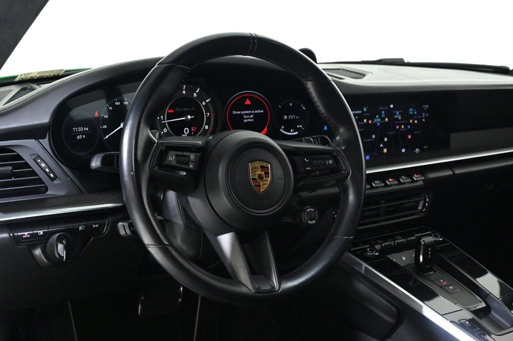 • Warranty Deductible: $0 Air Conditioning, Climate Control, Dual Zone Climate Control, Cruise Control, Power Steering, Power Windows, Power Mirrors, Leather Shifter, Power Drivers Seat, Power Passenger Seat, Memory Seat Position, Phone, Clock, Tachometer, Digital Info Center, Homelink System, Tilt Steering Wheel, Telescoping Steering Wheel, Steering Wheel Radio Controls, Driver Airbag, Passenger Airbag, Side Airbags, Keyless Entry, Security System, ABS Brakes, Traction Control, Dynamic Stability, Rear Defogger, Fog Lights, Intermittent Wipers, AM/FM, Alloy Wheels, Leather Interior Surface, Navigation System, Navigation system: Porsche Communication Management (PCM), Lightweight Package i.c.w. Adaptive Sport Seats Plus, Storage Package, 12 Speakers, Burmester High-End Surround Sound System, Radio data system, Automatic temperature control, Porsche Communication Management, Power driver seat, Steering wheel memory, Adaptive suspension, Four wheel independent suspension, Front Axle Lift System, Heated GT Sport Steering Wheel with Carbon Fiber, 4-Wheel Disc Brakes, Ceramic disc brakes: front and rear, Dual front impact airbags, Dual front side impact airbags, Front anti-roll bar, Low tire pressure warning, Occupant sensing airbag, Overhead airbag, Porsche Ceramic Composite Brakes (PCCB) in Black, Rear anti-roll bar, Brake assist, Exterior Parking Camera Rear, Auto High-beam Headlights, Delay-off headlights, Fully automatic headlights, Lightweight & Noise Insulated Glass, Auto-dimming door mirrors, Bumpers: body-color, Carbon Fiber Roof, Exclusive Design Taillights, Heated door mirrors, LED-Matrix Design Headlights in Black with PDLS+, PASM Sport Suspension (Lowered 10mm), Power door mirrors, Spoiler, Sport Exhaust System with Tailpipes in Silver, Window Trim in High Gloss Black, Ambient Lighting, Auto-dimming Rear-View mirror, Deletion of Quilting, Deletion of Turbo S Logo on Headrests, Driver door bin, Driver vanity mirror, Front reading lights, Illuminated Door-Sill Guards in Matte Carbon Fiber, Illuminated entry, Lane Change Assist (LCA), Outside temperature display, Overhead console, Passenger Cupholder Trim in Leather, Passenger vanity mirror, Sport steering wheel, Surround View, Telescoping steering wheel, Front Center Armrest, Heated front seats, Split folding rear seat, Sport Plus Seats, Ventilated Front Seats, Passenger door bin, Wheels: 20 Front/21 Rear 911 Turbo S, Rain sensing wipers, Recent Oil Change, Passed Inspection, 360 Camera, Active Parking Assist, Adaptive Headlights, AndroidTM Auto/Apple Carplay, Automatic Headlights, Backup Camera, Blind-Spot Monitors, Bluetooth, Collision Warning Alert System, Heated/Cooled Seats, Navigation, Touchscreen Controls, Voice Recognition, Wi-Fi Hotspot, FRESHLY SERVICED @ THE COLLECTION PORSCHE, NICELY EQUIPPED WITH MANY PORSCHE FACTORY ORDERED OPTIONS Adaptive headlights, Aux. Audio Input, Bluetooth, Carbon Fiber Trim, Carpeted Floor Mats, Center Arm Rest, Cup Holders, Daytime Running Lights, Front Heated Seats, Heated Mirrors, Navigation System, Overhead Console, Parking Sensors, PCM, Premium Sound, Rear Fog Lamps, Rear Spoiler, Rear Spoiler, Reverse Camera, Roll Stability Control, Side Curtain Airbags, Sport Seats, Tire Pressure Monitor, Vanity Mirrors - Contact Alvaro Uribe at 786-628-7606 or auribe@ferrariofmiami.com for more information. -