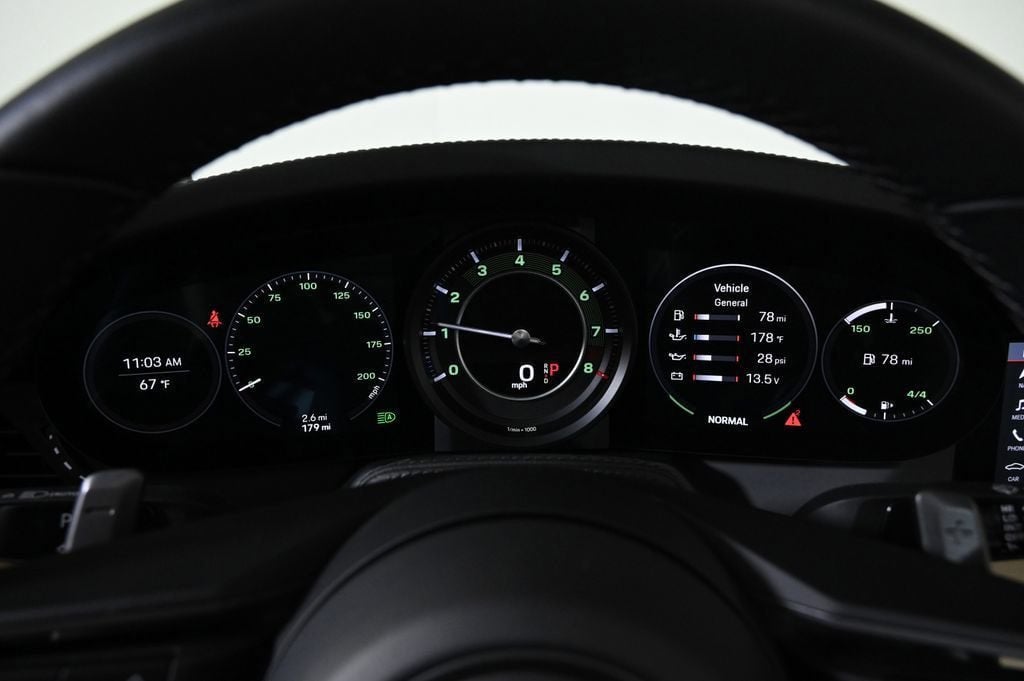 - Warranty Deductible: $0 Air Conditioning, Climate Control, Dual Zone Climate Control, Cruise Control, Power Steering, Power Windows, Power Mirrors, Leather Steering Wheel, Leather Shifter, Power Drivers Seat, Power Passenger Seat, Memory Seat Position, Phone, Clock, Tachometer, Digital Info Center, Homelink System, Tilt Steering Wheel, Telescoping Steering Wheel, Steering Wheel Radio Controls, Driver Airbag, Passenger Airbag, Side Airbags, Keyless Entry, Security System, ABS Brakes, Traction Control, Dynamic Stability, Rear Defogger, Fog Lights, Intermittent Wipers, AM/FM, Alloy Wheels, Leather Interior Surface, Navigation System, Extended Heritage Design Leather Package, SportDesign Package in High Gloss Black, Storage Package, 8 Speakers, Burmester High-End Surround Sound System, Radio data system, Automatic temperature control, Porsche Communication Management, Power driver seat, Adaptive suspension, Four wheel independent suspension, Front Axle Lift System, 4-Wheel Disc Brakes, Dual front impact airbags, Dual front side impact airbags, Front anti-roll bar, Integrated roll-over protection, Low tire pressure warning, Occupant sensing airbag, Overhead airbag, Rear anti-roll bar, Rear Axle Steering, Brake assist, Porsche Dynamic Chassis Control, Exterior Parking Camera Rear, Delay-off headlights, Fully automatic headlights, Sport Exhaust System, Auto-dimming door mirrors, Bumpers: body-color, Engine Compartment Cover in Titanium Grey, Heated door mirrors, Individual Race Number for Heritage Design Edition, Power door mirrors, Power Folding Exterior Mirrors, Spoiler, Sport Exhaust System with Tailpipes in Silver, Ambient Lighting, Apple CarPlay, Auto-dimming Rear-View mirror, Convertible roof lining, Driver door bin, Driver vanity mirror, Front reading lights, Illuminated entry, Lane Change Assist (LCA), Night Vision Assist, Outside temperature display, Overhead console, Passenger vanity mirror, PDK Gear Selector in Aluminum, Porsche InnoDrive with ACC & ALK, Power convertible roof, Sport steering wheel, Surround View, Telescoping steering wheel, Under Door Puddle Light Projectors, Front Center Armrest, Heated front seats, Split folding rear seat, Sport Plus Seats, Passenger door bin, Glass rear window, Rain sensing wipers, New Tires, Recent Oil Change, Passed Inspection, 360 Camera, Adaptive Headlights, AndroidTM Auto/Apple Carplay, Automatic Headlights, Backup Camera, Blind-Spot Monitors, Bluetooth, Navigation, Touchscreen Controls, Voice Recognition, Wi-Fi Hotspot, ONLY 175 MILES / 1 OWNER / FLORIDA GARAGED, SOLD NEW AND FRESHLY SERVICED @ THE COLLECTION PORSCHE, NICELY EQUIPPED WITH MANY CUSTOMER ORDERED FACTORY OPTIONS., INCLUDES PORSCHE FITTED INDOOR CAR COVER, CAR SHOWS AS NEW / COLLECTOR CAR, 1 OF ONLY 992 UNITS BUILT WORLDWIDE., PORSCHE FACTORY CERTIFIED PREOWNED FACTORY WARRANTY APPLIES, FRESH UPDATED SERVICE INCLUDES 4 NEW TIRE (DUE TO AGE), NEW OIL & FILTER CHANGE, NEW CABIN FILTER CHANGE, 4 WHEEL ALIGNMENT, BRAKE FLUID FLUSH, & NEW WIPER BLADE REFILLS. Adaptive headlights, Aux. Audio Input, Bluetooth, Carpeted Floor Mats, Center Arm Rest, Cup Holders, Daytime Running Lights, Front Heated Seats, Heated Mirrors, Navigation System, Overhead Console, Parking Sensors, PCM, Premium Sound, Rear Fog Lamps, Rear Spoiler, Rear Spoiler, Reverse Camera, Roll Stability Control, Side Curtain Airbags, Sport Seats, Tire Pressure Monitor, Vanity Mirrors - Contact Alvaro Uribe at 786-628-7606 or auribe@ferrariofmiami.com for more information. -