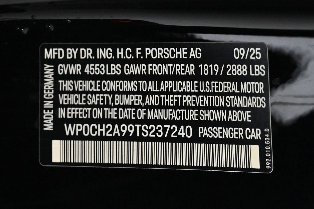 Certified. Black 2026 Porsche 911 Carrera 4S AWD 8-Speed Porsche Doppelkupplung (PDK) 3.0L H6 Turbocharged DOHC 24V LEV3-ULEV70 473hp Passed Inspection, 360 Camera, Active Parking Assist, Adaptive Headlights, Automatic Headlights, Backup Camera, Blind-Spot Monitors, Bluetooth, Heated/Cooled Seats, Navigation, Smartphone App Integration, Touchscreen Controls, Voice Recognition, Wi-Fi Hotspot, AS NEW / ONLY 31 MILES / FLORIDA TITLED, NICELY EQUIPPED WITH MANY PORSCHE FACTORY ORDERED OPTIONS, AWD, 18-Way Adaptive Sport Seats Plus with Memory Package, BOSE Surround Sound System, Brake Calipers in High Gloss Black, Deviated Stitching Interior Package, Exclusive Design Fuel Cap, Exclusive Design Taillights, Front Ventilated Seats, Interior Trim Inlays in Matte Carbon Fiber, Lane Change Assist (LCA), Model Designation on Doors in Black, Navigation system: Porsche Communication Management (PCM), Porsche Crest on Front Headrests, Power Steering Plus, Rear Lid Grille Vertical Slat Inlays in Exterior Color, Rear Model Designation in High Gloss Black, Seat Belts in Racing Yellow, Sport Chrono Package, Sport Chrono Stopwatch Dial in Racing Yellow, Sport Exhaust System with Tailpipes in Black, SportDesign Package, Surround View with Active Parking Support, Under Door Puddle Light Projectors, Wheels: 20 Front/20 Rear Carrera Classic. Difference From the moment you drive into our one-of-a-kind facility, you will feel a difference in the energy here. Simply put: we are not your ordinary car dealership. What truly differentiates us is the professional level of service we provide. When you acquire a new or pre-owned automobile from us, both you and your automobile are treated with the utmost care and attentiveness like a member of our own family. That is why so many of our clients return to THE COLLECTION time and again, and refer us time and time again. We have also amassed an extraordinary team of employees. Plus, we have created all-new positions with your needs in mind. Including a Client Delight Manager which oversees our concierge team and whose sole purpose is to surprise and delight our guests; and on-staff technologists available to assist and educate you on all the latest features available on your vehicle. THE COLLECTION family will exceed your expectations, making this an uniquely gratifying experience that you will want to revisit time and time again. CARFAX One-Owner. Odometer is 1274 miles below market average! Porsche Approved Certified Pre-Owned Details: