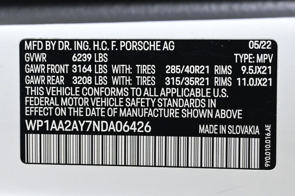 KEY FEATURES AND OPTIONS Comes equipped with: Air Conditioning, Bluetooth, Navigation System, Front Heated Seats. This Porsche Cayenne also includes Clock, Climate Control, Tachometer, Multi-Zone Climate Control, Cruise Control, Homelink System, Privacy Glass/Tinted Windows, Power Steering, Telescoping Steering Wheel, Steering Radio Controls, Power Mirrors, Leather Steering Wheel, Driver Airbag, Passenger Airbag, Intermittent Wipers, Keyless Entry, Rear Defogger, Security System, AM/FM, Satellite Radio, Sliding Rear Window, Rear Spoiler, Rear Wipers, Center Arm Rest, Remote Fuel Door, Vanity Mirrors, Heated Mirrors, Rear Fog Lamps, Child Proof Door Locks, Daytime Running Lights, Parking Sensors, Reverse Camera, Side Curtain Airbags, Roll Stability Control, Rear-Side Airbags, PCM, Power Lift Gate, Tire Pressure Monitor, Carpeted Floor Mats, Overhead Console, Aux. Audio Input, HD Radio, Onboard Hard Drive, Voice Control. Air Conditioning, Climate Control, Dual Zone Climate Control, Cruise Control, Tinted Windows, Power Steering, Power Windows, Power Mirrors, Leather Steering Wheel, Leather Shifter, Power Drivers Seat, Power Passenger Seat, Memory Seat Position, Clock, Tachometer, Digital Info Center, Homelink System, Tilt Steering Wheel, Telescoping Steering Wheel, Steering Wheel Radio Controls, Sunroof, Moonroof, Driver Airbag, Passenger Airbag, Keyless Entry, Security System, ABS Brakes, Traction Control, Dynamic Stability, Rear Defogger, Fog Lights, Intermittent Wipers, AM/FM, Leather Interior Surface, , 14 Speakers, Radio data system, Automatic temperature control, Porsche Communication Management, Power driver seat, Adaptive suspension, Four wheel independent suspension, 4-Wheel Disc Brakes, Dual front impact airbags, Dual front side impact airbags, Front anti-roll bar, Knee airbag, Low tire pressure warning, Occupant sensing airbag, Overhead airbag, Rear anti-roll bar, Rear side impact airbag, Power Liftgate, Brake assist, Exterior Parking Camera Rear, Delay-off headlights, Fully automatic headlights, Auto-dimming door mirrors, Bumpers: body-color, Heated door mirrors, Power door mirrors, Spoiler, Turn signal indicator mirrors, 8-Way Sport Seats, Apple CarPlay, Auto-dimming Rear-View mirror, Driver door bin, Driver vanity mirror, Front reading lights, Illuminated entry, Outside temperature display, Overhead console, Passenger vanity mirror, Rear reading lights, Rear seat center armrest, Telescoping steering wheel, Voltmeter, Front Center Armrest, Heated front seats, Leather Seat Trim, Split folding rear seat, Sport Plus Seats, Passenger door bin, Wheels: 21 RS Spyder Design in Satin Platinum, Rain sensing wipers, Rear window wiper, Axle Ratio: 3.480 Adaptive headlights, Aux. Audio Input, Bluetooth, Carpeted Floor Mats, Center Arm Rest, Child Proof Door Locks, Daytime Running Lights, Front Heated Seats, Heated Mirrors, Navigation System, Overhead Console, Parking Sensors, PCM, Power Lift Gate, Premium Sound, Rear Fog Lamps, Rear Spoiler, Rear Spoiler, Rear Wipers, Rear-Side Airbags, Remote Fuel Door, Reverse Camera, Roll Stability Control, Side Curtain Airbags, Sliding Rear Window, Sport Seats, Tire Pressure Monitor, Vanity Mirrors - Contact Alvaro Uribe at 786-628-7606 or auribe@ferrariofmiami.com for more information. -