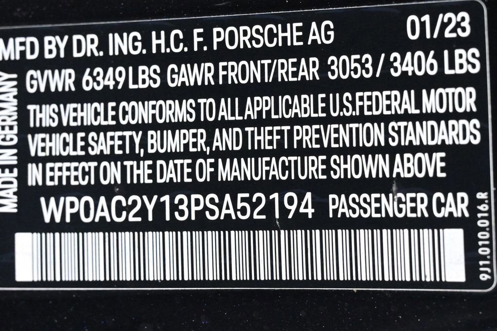 - Multipoint Point Inspection Air Conditioning, Climate Control, Dual Zone Climate Control, Cruise Control, Power Steering, Power Windows, Power Mirrors, Leather Steering Wheel, Leather Shifter, Power Passenger Seat, Memory Seat Position, Phone, Clock, Digital Info Center, Homelink System, Tilt Steering Wheel, Telescoping Steering Wheel, Steering Wheel Radio Controls, Driver Airbag, Passenger Airbag, Keyless Entry, Security System, ABS Brakes, Traction Control, Dynamic Stability, Rear Defogger, Fog Lights, Intermittent Wipers, Alloy Wheels, Leather Interior Surface, Navigation System, Navigation system: Porsche Communication Management (PCM), Premium Package, Storage Package, Technology Package, 14 Speakers, Audio memory, Radio data system, Automatic temperature control, HVAC memory, Ionizer, Porsche Intelligent Range Manager, Head-Up Display, Porsche Communication Management, Power driver seat, Steering wheel memory, Adaptive suspension, Auto-leveling suspension, Four wheel independent suspension, 4-Wheel Disc Brakes, Dual front impact airbags, Dual front side impact airbags, Front anti-roll bar, Knee airbag, Low tire pressure warning, Occupant sensing airbag, Overhead airbag, Rear anti-roll bar, Rear side impact airbag, Fixed Panoramic Roof in Glass, Brake assist, Exterior Parking Camera Rear, Auto High-beam Headlights, Delay-off headlights, Fully automatic headlights, Seat Belts in Bordeaux Red, Thermally & Noise Insulated Glass, 3 Years of 30 Minute DC Charging Sessions, Auto-dimming door mirrors, Bumpers: body-color, Heated door mirrors, LED-Matrix Design Headlights in Black with PDLS+, Power door mirrors, Power Folding Exterior Mirrors, Spoiler, 18-Way Adaptive Sport Seats Plus with Comfort Memory, Auto-dimming Rear-View mirror, Compass, Driver door bin, Driver vanity mirror, Front reading lights, Illuminated entry, Lane Change Assist (LCA), Outside temperature display, Overhead console, Passenger Display, Passenger vanity mirror, Rear reading lights, Rear seat center armrest, Remote ParkAssist with Lane Change Assist (LCA), Sport steering wheel, Surround View, Telescoping steering wheel, Front Center Armrest, Front Seat Ventilation, Heated front seats, Heated rear seats, Race-Tex Seat Trim with Two-Tone Interior, Rear 2+1 Seats, Split folding rear seat, Sport Plus Seats, Passenger door bin, Wheels: 21 RS Spyder Design, Rain sensing wipers, Passed Inspection, 360 Camera, Active Parking Assist, Adaptive Headlights, AndroidTM Auto/Apple Carplay, Automatic Headlights, Backup Camera, Blind-Spot Monitors, Bluetooth, Heated/Cooled Seats, Navigation, Voice Recognition, Wi-Fi Hotspot, FRESHLY SERVICED @ THE COLLECTION PORSCHE, NICELY EQUIPPED WITH MANY PORSCHE FACTORY ORDERED OPTIONS. Adaptive headlights, Aux. Audio Input, Bluetooth, Carpeted Floor Mats, Center Arm Rest, Child Proof Door Locks, Daytime Running Lights, Front Heated Seats, Heated Mirrors, Navigation System, Overhead Console, Parking Sensors, PCM, Power Lift Gate, Rear Fog Lamps, Rear Heated Seats , Rear Spoiler, Rear Spoiler, Rear-Side Airbags, Remote Trunk Lid, Reverse Camera, Roll Stability Control, Side Curtain Airbags, Sliding Rear Window, Tire Pressure Monitor, Vanity Mirrors - Contact Alvaro Uribe at 786-628-7606 or auribe@ferrariofmiami.com for more information. -