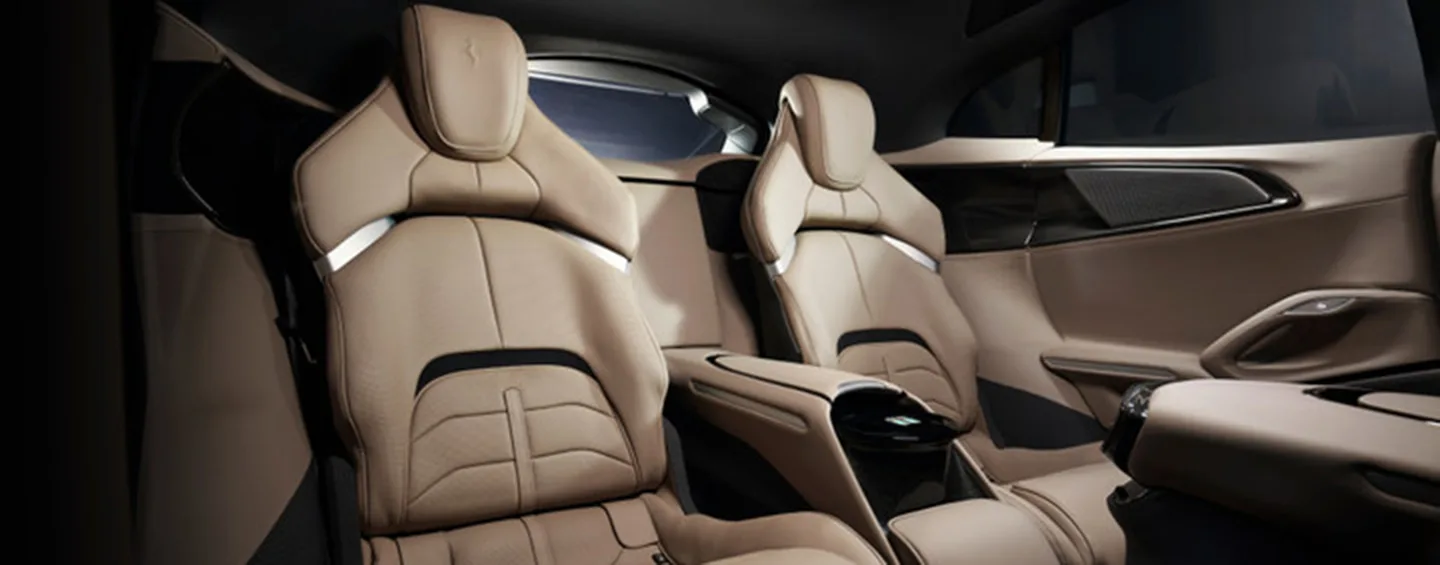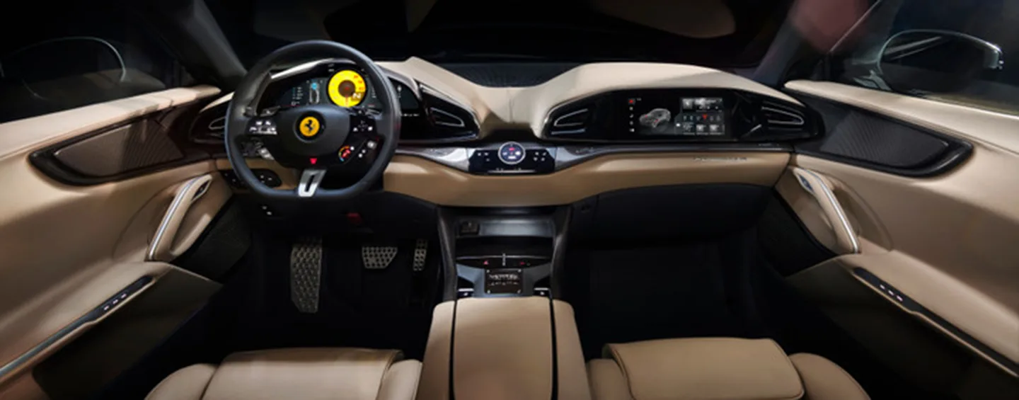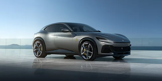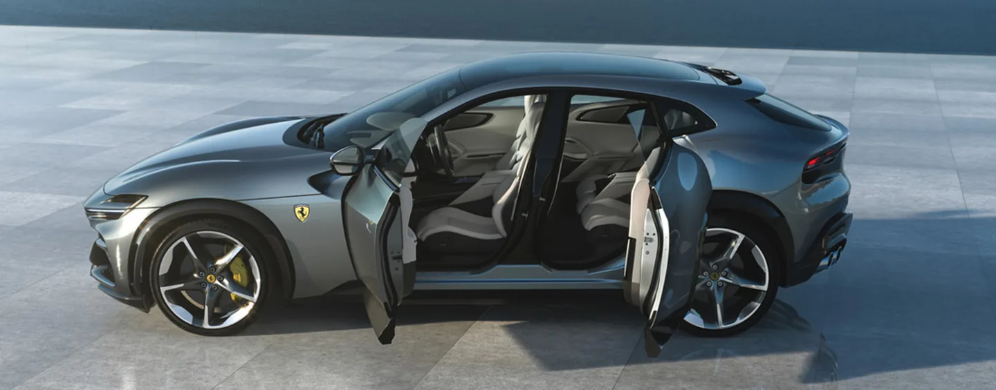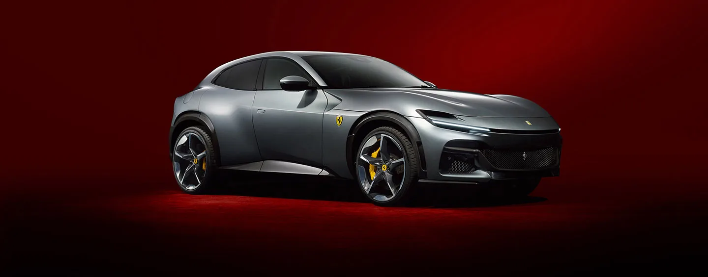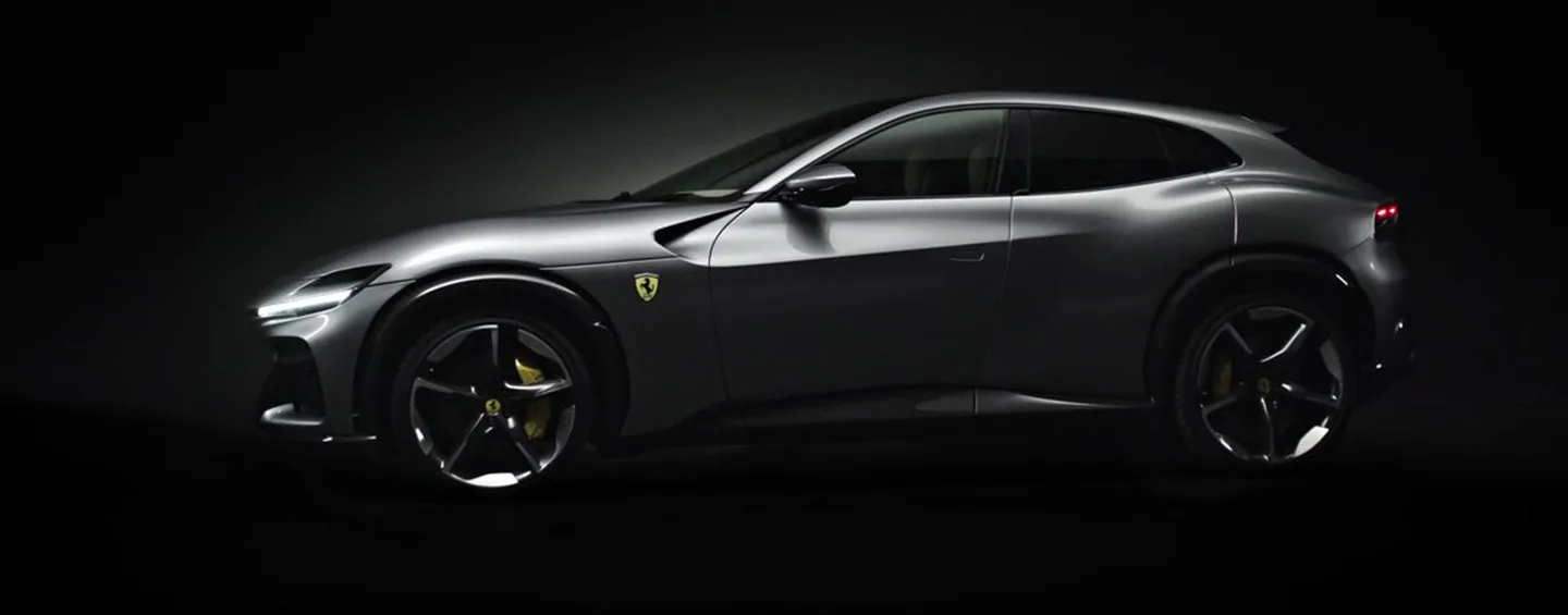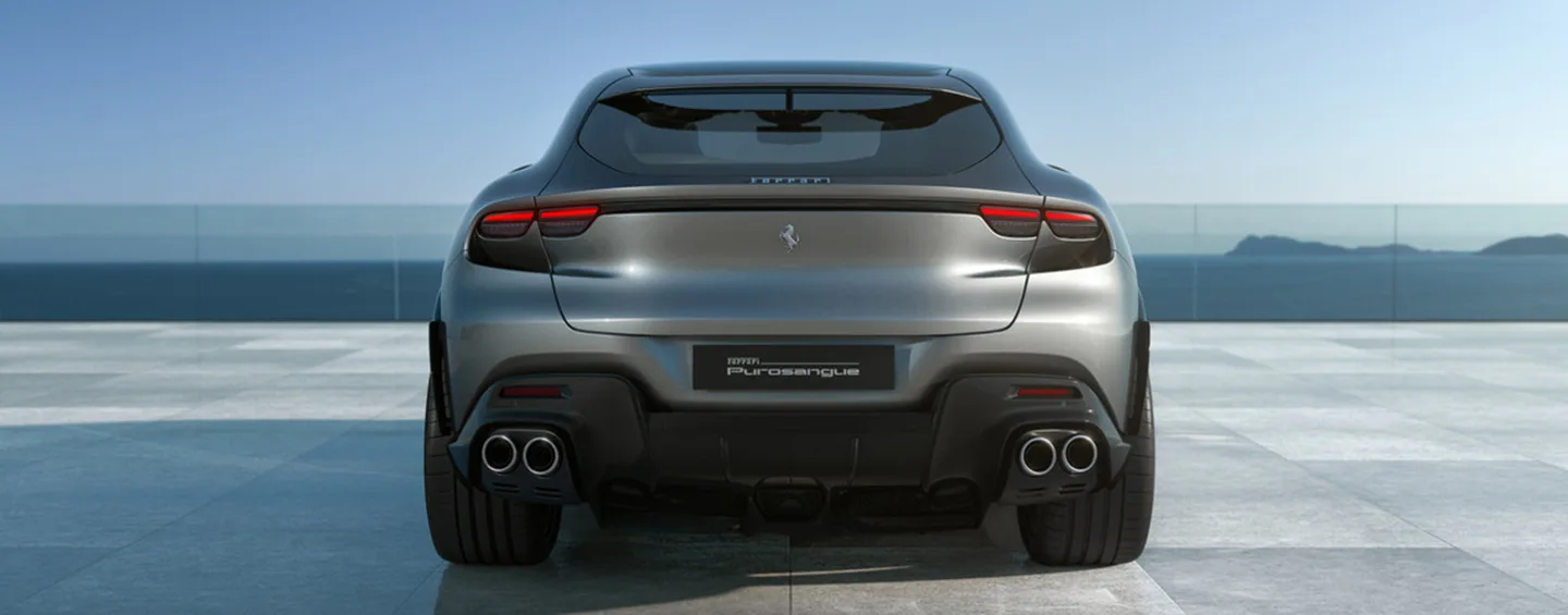 The sleek, athletic exterior of the Ferrari Purosangue gives the impression of coupe proportions. Maranello deems the weight distribution (49%Front/51%Rear) optimal for a mid-front sports car. The layout and design is vastly different from other modern GT archetypes, i.e. crossovers and SUVs. The front grill has been replaced by a dihedral suspended on the lower section while slim DRL lights are sandwiched between 2 pairs of air intakes. The aerodynamic design is obvious at the front aero bridge which reduces drag. The Purosangue has unique floating wheel arch strips in order to prevent transverse turbulence. The imposing rear diffuser and suspended rear spoiler continue the intelligent, air funneling design at the rear.